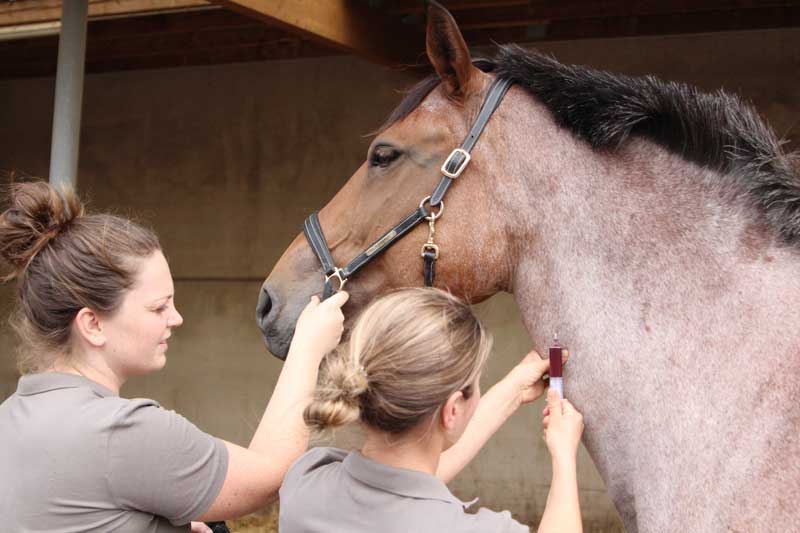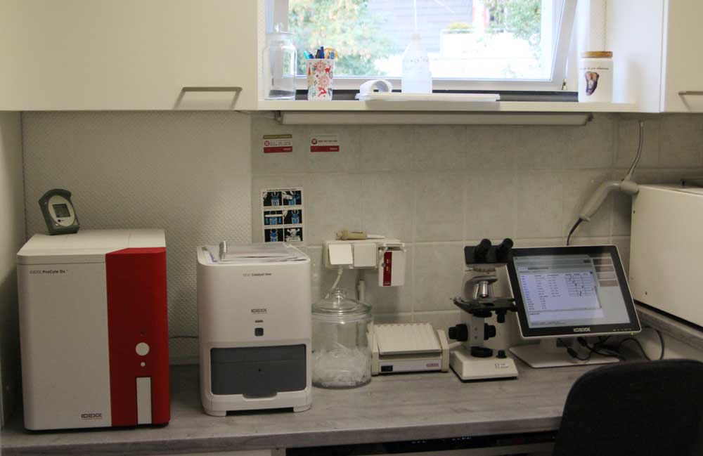 Unsere Praxis verfügt über ein Labor zur Blutanalyse, so dass das Blut Ihres Tieres direkt bei uns untersucht werden kann. Besonders bei akut und schwer erkrankten Patienten (z.B. Kolik oder Kreuzverschlag) kann es sehr wertvoll und hilfreich sein, schnell eine Blutanalyse vorliegen zu haben, um die Schwere der Erkrankung und den Zustand des Patienten richtig einschätzen zu können.