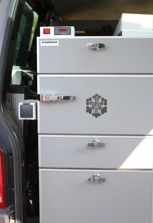 Auch im Fahrzeug können Impfstoffe und Medikamente unter permanenter Temperaturkontrolle gekühlt gelagert werden.
