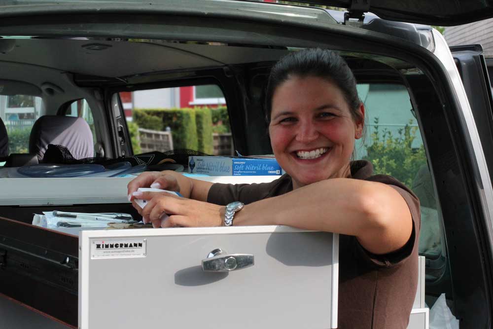 Alle unsere Fahrzeuge für die Pferdefahrpraxis sind komplett ausgebaut (Zimmermann), alles hat in Schränken und Schubladen seinen Platz, von der Spritze bis zum Ultraschallgerät.
