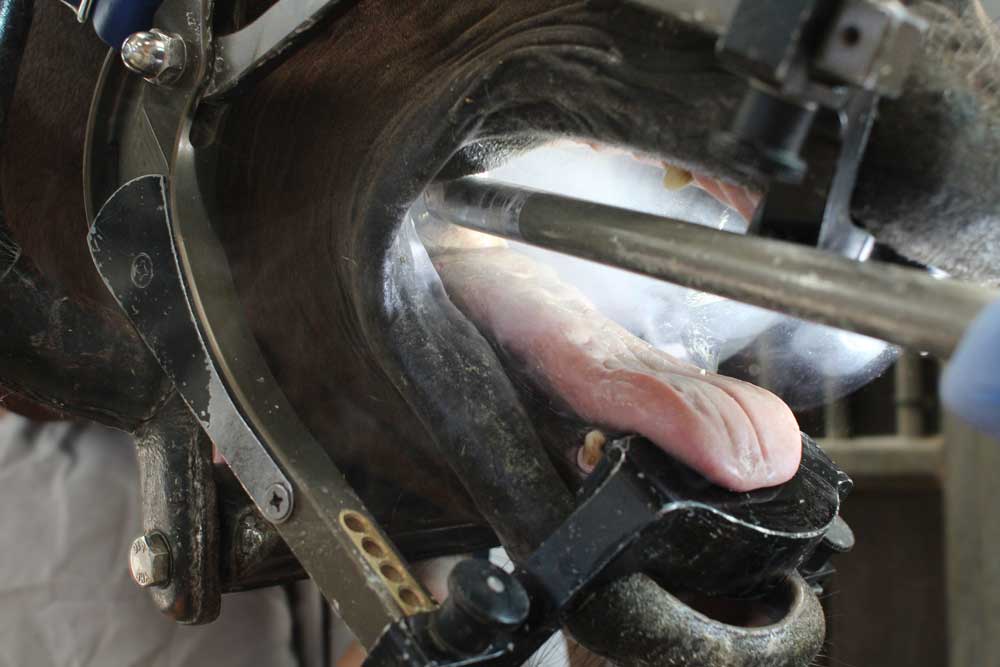 Nach dem Ausspülen des Pferdemauls erfolgt eine gründliche Untersuchung der Maulhöhle mit Hilfe einer Kopflampe und eines Zahnspiegels. Es besteht auch die Möglichkeit der Befundung mittels einer Kamera (Oralendoskop), was auch dem Pferdebesitzer den direkten Blick ins Pferdemaul ermöglicht.