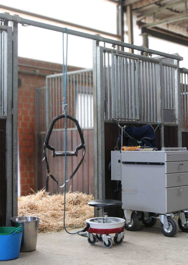 Zur Behandlung benötigen wir einen überdachten Bereich mit befestigtem Untergrund. Ideal ist eine Pferdebox mit einem stabilen Querbalken über der Tür, an dem wir mit Hilfe eines Seils einen Ring befestigen, in dem das sedierte Pferd während der Behandlung seinen Kopf ablegt. Diese Arbeitsweise erspart Pferd und Besitzer den Kopf während der Behandlung hoch halten zu müssen und ermöglicht eine exakte und sichere Zahnbearbeitung. Zu jedem Zeitpunkt der Behandlung ist eine geschulte Helferin an der Seite Ihres Pferdes.